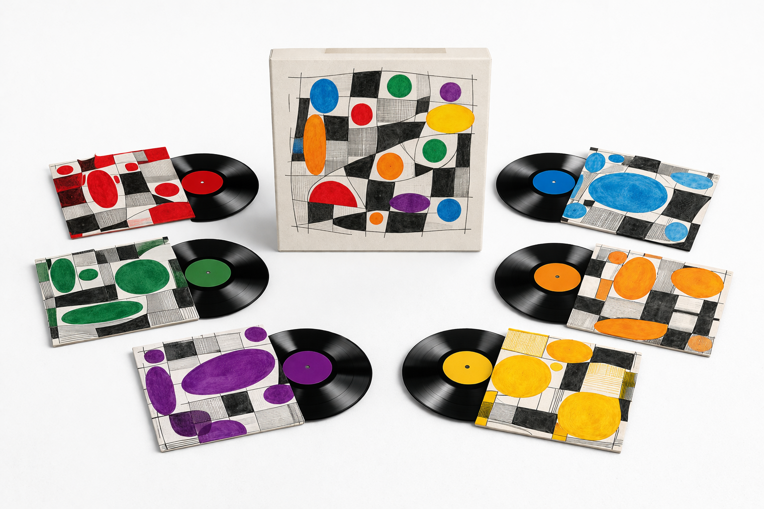 A vinyl edition composed of six records, accompanied by an art book featuring illustrations and poetic texts, and a technical volume gathering the musical and sonic analysis and development of the work. The edition is produced on a made-to-order basis for the United States, European, Chinese, and Japanese markets.